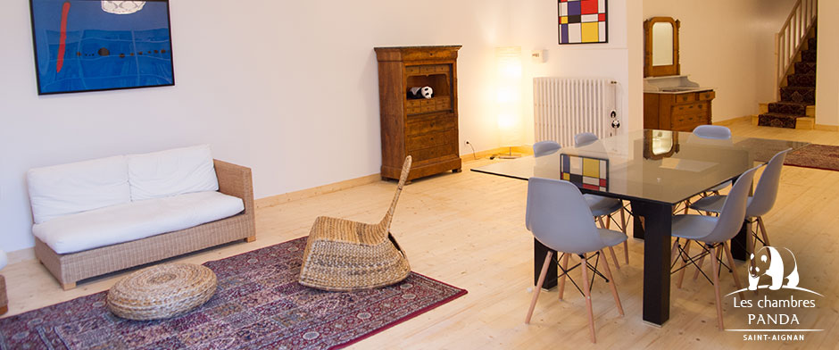 Profitez d'un écrin de nature au coeur de Saint-Aignan. Après votre journée, relaxez-vous au sein du salon de jardin des Chambres Panda et profitez d'une détente bien méritée.